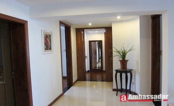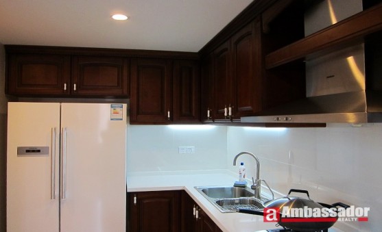 This 3-bedroom apartment features elegant decoration with exquisite furniture.Cute kitchen leading to a nice dining area which connects to a beautiful living room with cozy sofa in white color lovely matched with exquisite red carpet.Bedrooms uptairs enjoy quietness provide you with a peaceful place to rest.