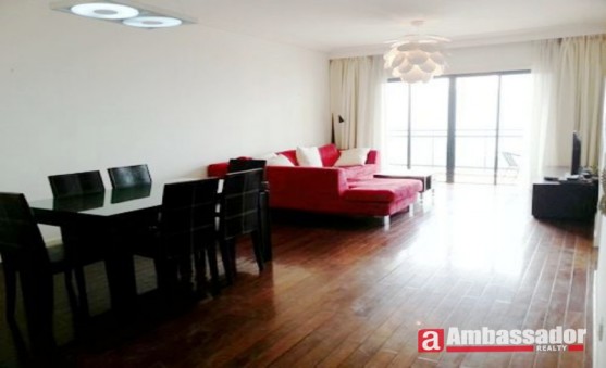 Newly decorated apartment full of Ikea style furniture.Very high floor,nice view of this area.Light style wooden floor in each room.French windows make this living room much brighter.Modern kitchen with high quality equipments.Each bedroom with suite bathroom.Bright and airy are the biggest highlight of this elegant apartment.