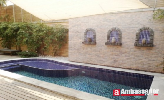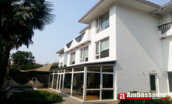 Brand new villa in this area.Special designed living room which is much sunny and bright.Bay windows in living room.Partially furnished.Modern kitchen with a spacious dining area.Warm bedrooms with suite bathrooms.Small garden with green plants and flowers surrouned this villa.