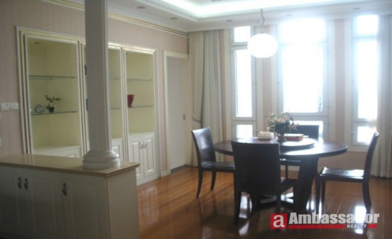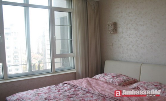 High floor in Gubei Area.International and cute compound.Fully furnished of newly decorated.Chinese wooden furniture in this apartment.Bay windows in the living room.Cool kitchen with a spacious dining area.French windows connecting the dining area and balcony.Huge bedrooms with bay windows.Special washroom with an amazing tube