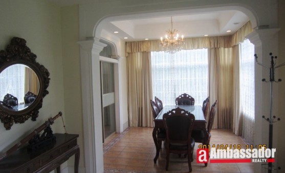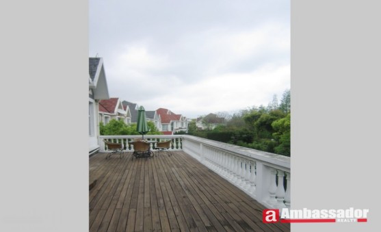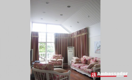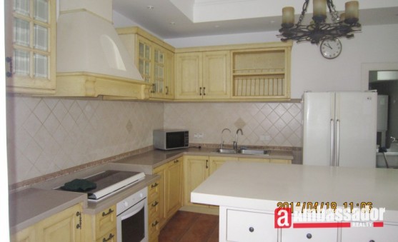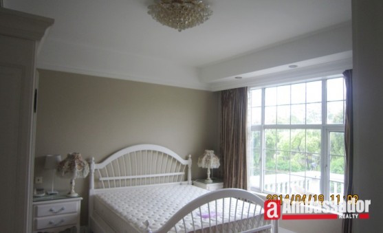 This elegant 5 bedroomed townhouse features huge terrace which provides you with a beautiful view of the garden. A spacious living room with leather sofa makes you feel comfortable after one day work. Floor to ceiling windows leads to a large backyard full of greens. Western style open kitchen leads to a huge dinning area with wooden table and chairs of high quality.