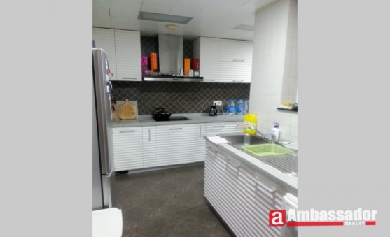This 4 bedroomed apartment in shanghai features spacious living room with two beautiful drop lights. Wooden furniture and wooden floor in the living room offers you high quality of enjoyment. Folding screens in the living room functions as a hallway leading from the doorway to a fascinating place. Airy kitchen room is well equipped with quality appliances. Each bedroom has en suite bathroom.