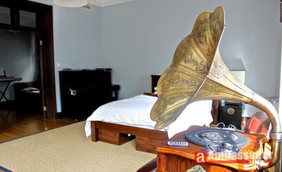 This fantastic old apartment in shanghai features stylish interior design and nice layouts. The apartment is separated into two parts by the porch made of gray bricks. One part is a spacious living room with a cute dining area, and the other is a study room full of artistic atmosphere. French windows in the living room makes you enjoy the sunshine in the backyard. An ancient CD player is one of the biggest highlights of this old apartment.