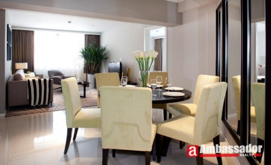 This 3 bedroomed service apartment in shanghai provides you with enjoyment of high quality. Spacious living room with a cute dining area is connected with the kitchen room full of quality appliances. A huge tub in the bathroom makes you enjoy taking a bath.