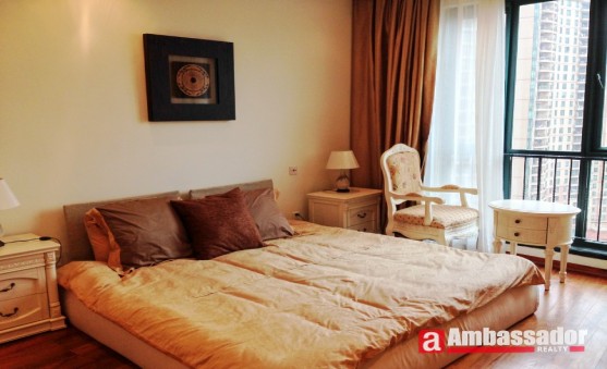 This 4 bedroomed apartment in shanghai features special designed decoration and nice layouts. Spacious living room with floor to ceiling windows provides you with an intimate space for gathering on a lazy afternoon. Bedroom features Western style furniture of high quality. A study room with a large bookshelf offers you much space for your books. Western style kitchen room is well equipped with quality appliances.