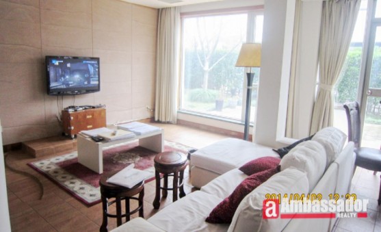 This amazing villa features huge glass wall and glass ceiling in the living room. French windows in the living room lead you to a beauitful garden full of lush greens. Wooden chair in the living room is one of the biggest highlights, which features the furniture of Ming and Qing dynasties. Bedrooms with wooden floors throughout and furniture made of wooden provide you with the enjoyment of high quality.