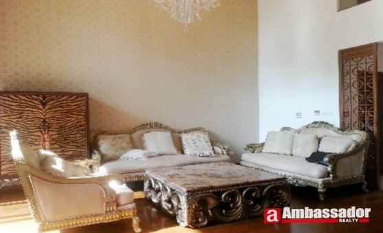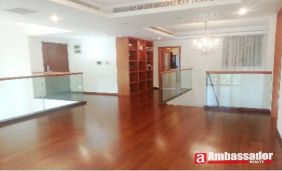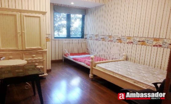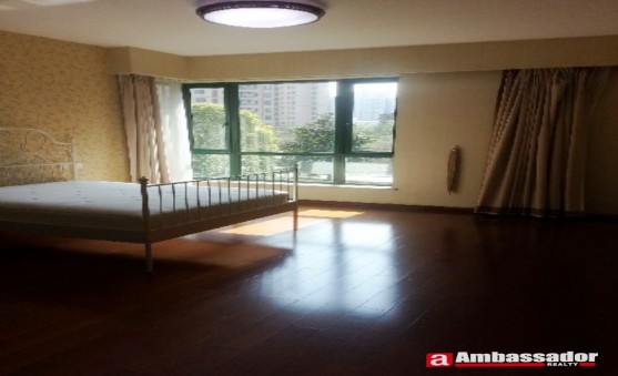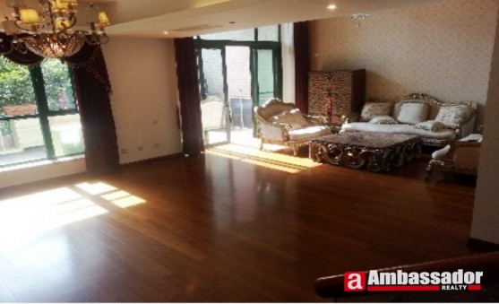 This fantastic 2-storeyed apartment in shanghai features Western style furniture with a bit imposing manner of gorgeous decoration. Spacious living room with French windows leads to a garden full of lush greens. The bedroom on the second floor is airy with high privacy. The kitchen room is well equipped with quality appliances.