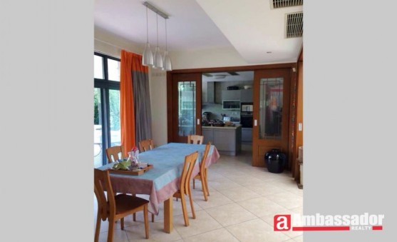 This 5 bedroomed villa features special designed decoration and nice layouts. Spacious living room is decorated in red and white which balances the enthusiasm and calm. A round table with a curved shape chair makes it special in the dining area. Next to it is an open kitchen room with quality appliances. A large garden provides you with much space for hanging your clothes.