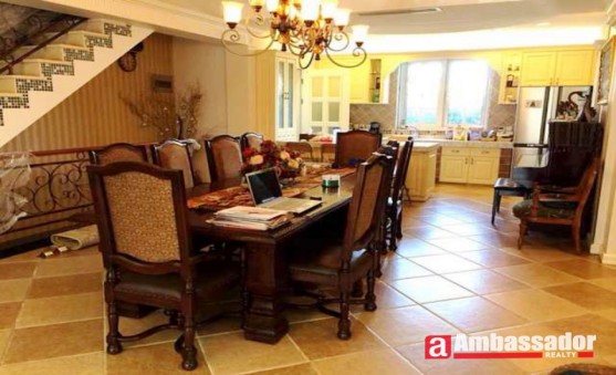 This amazing villa features Western style decoration and nice layouts. Spacious living room with comfortable sofa sets and a coffee table makes you enjoy the tea time on a lazy afternoon. Open kitchen room is connected with a large dining area accommodating at most 10 people. The specially designed stairways with the empty carving handrail lead to the second floor which provides you with much privacy. Bedroom with Frech windows leads to a large balocny.