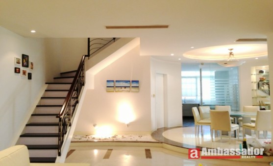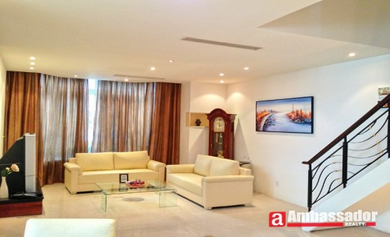 This 3 bedroomed villa features special decoration and nice layouts. Spacious living room with a round table in the central of it is beautifully decorated with ornaments on the showcase. Specially designed stairways leading to the second floor provides you with much privacy. Bedroom with bay windows offer you an extra place of resting.