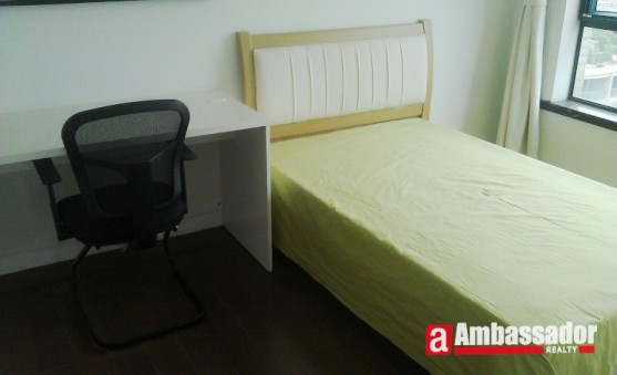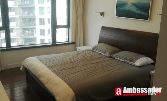 This 3 bedroomed apartment in shanghai features simple style decoration but full of modern furniture. Spacious living room with floor to ceiling windows leads to a huge balcony providing you with an intimate space for gathering on a lazy afternoon. A large dining area in the living room is connected with the kitchen room. Bay windows with window seats provides you with an extra place of resting.