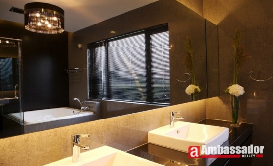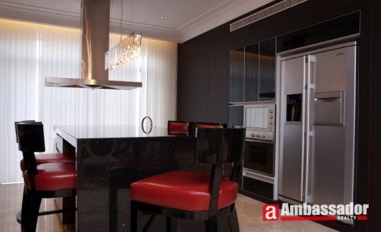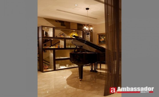 This stunning villa features luxurious interior decoration and nice layouts. Spacious living room with purple velvet sofa makes you feel comfortable. A large long table in the dining area provides you with much space for accomodating at least 10 people. A nice piano in the living room is especially tailored for who likes playing the piano. Stylish open-plan kitchen features a specially designed table with touch stoves on it and a smoke exhaust right above it. A large home theatre and a cool bar in the basement are one of the biggest highlights which provide you the enjoyment of high quality.