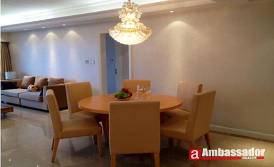 This 3 bedroomed service apartment in shanghai is presented in excellent condition benefiting from well-proportioned rooms including a master room, a guest room, a study room, a kitchen room and two bathrooms. Spacious living room with floor to ceiling windows leads to a huge balcony. The management fees, invoice tax, 10M broadband connection fees, satellite TV fees and club member fees are all included in the rental. Their service includes 2 times housekeeping/week.