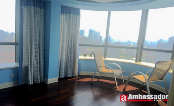 This superb 3 bedroomed apartment in shanghai is presented in excellent condition benefiting from great location close to the Commercial Street of Middle Huaihai Road. Huge terrace provides you with an intimate space for gathering on a lazy afternoon. Half-round living room with bay windows offer you an extra place of resting. Western style kitchen room is well equipped with quality appliances. A round-shaped bathtub with the function of massage in the bathroom makes you enjoy taking a bath.