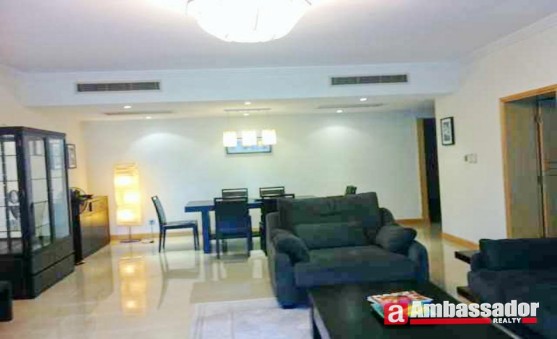 This superb 3 bedroomed apartment in shanghai features large windows on one side of the living room. Bedrooms with floor to ceiling windows provide you with abundant sunshine. Spacious kitchen room is well fitted with quality appliances.
