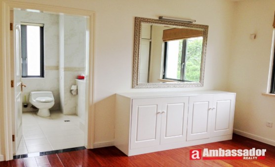 This 5 bedroomed villa features ample space and large windows in each room. Living room with high ceiling windows provides you with the abundant sunshine and beautiful view of the outside garden. Some rooms with floor to ceiling windows have access to the huge balcony. Airy kitchen room is well fitted with quality appliances. Furniture can be put in according to your requirement.