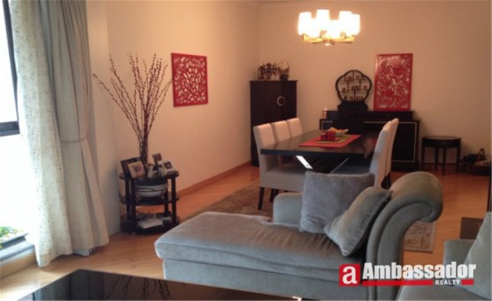 This 3 bedroomed apartment in shanghai is presented in excellent condition benefiting from well-proportioned rooms including two spacious living rooms with floor to ceiling windows and a dining area respectively, two bedrooms with en suite bathrooms and a well-fitted kitchen room.