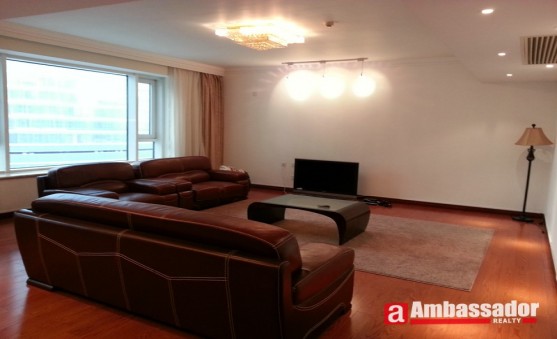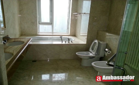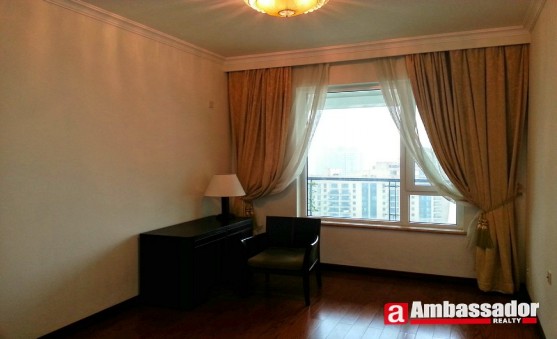 This 3 bedroomed apartment in shanghai offers bright and spacious accommodation benefiting from a large living room with large windows providing the abundant sunshine. Bedrooms with floor to ceiling windows offers access to a huge balcony. A study room with a large bookshelf is especially tailored for those who like reading. The modern kitchen room is fitted with quality equipment. Bathroom with a large bathtub makes you enjoy taking a bath.