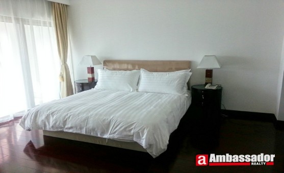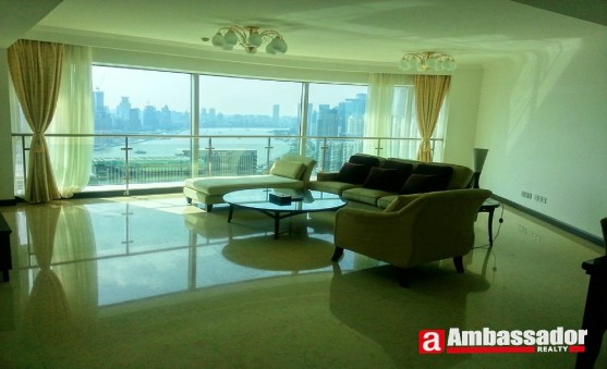 This superb 4 bedroomed apartment in shanghai features a circle and arch windows in the living room, offering a majestic view of the Bund and Huangpu River. Modern kitchen room is fitted with quality equipment. Bathroom with a large bathtub makes you enjoy taking a bath. Three bedrooms plus a study room are large enough for a family with kids.