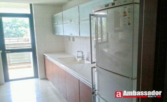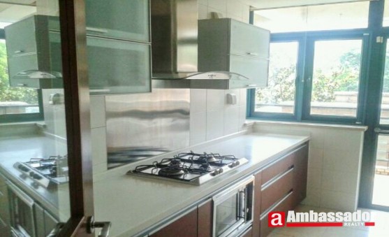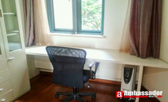 This 4 bedroomed apartment in shanghai offers bright and spacious accommodation benefiting from well-proportioned rooms including a large living room with French windows leading to a huge balcony, a dining area, three bedrooms with two en suite bathrooms. A study room with a large bookshelf is especially tailored for those who like reading. The modern kitchen room is fitted with quality equipment. Bathrooms have a shower and a large bathtub respectively. All the equipement enjoys the international reputation.