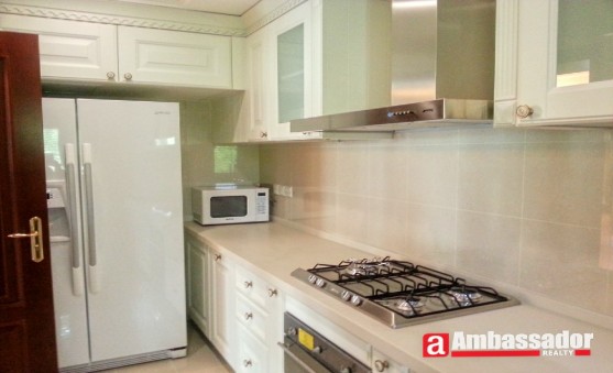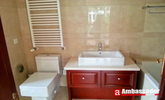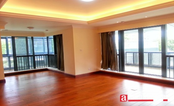 This 3 bedroomed apartment in shanghai features luxurious interior decoration and nice layouts. Spacious living room with two sides of the French windows lead to a huge balcony providing you with a beautiful view of the lush greens. Cute dining area in the living room is connected with the kitchen room. Bedroom with bay windows provide you with an extra place for restng. Bathroom with a large tub makes you enjoy taking a bath.