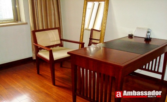 This fantastic 4 bedroomed apartment in shanghai features burlywood furniture of high quality. It is excellent condition benefiting from well-proportioned rooms including a spacious living room, a large dining area with Western style dining table and desks, 3 bedrooms with two en suite bathrooms, a study room and a well-fitted kitchen room.