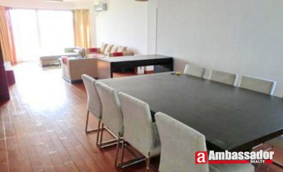 This 2 bedroomed apartment in shanghai is presented in excellent condition benefiting from well-proportioned rooms including a spacious living room with French windows opening to a huge balcony, a large dining area seating 8 people at most, two bedrooms with one en suite bathroom, an ample study room and a well-fitted kitchen room.