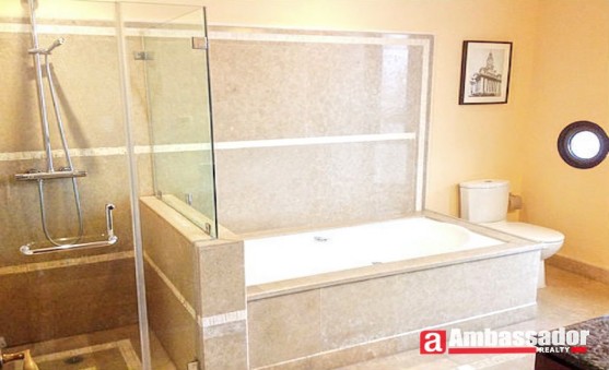 This 3 bedroomed apartment in shanghai features wooden materials with raw color indicating respect for nature. A spacious living room with the dining area facing to the French windows leading to a huge balcony. Bedroom with a painting in rural style on the wall relax the whole atmosphere. Modern kitchen room is well equipped. A large tub in the bathroom makes you enjoy taking a bath.
