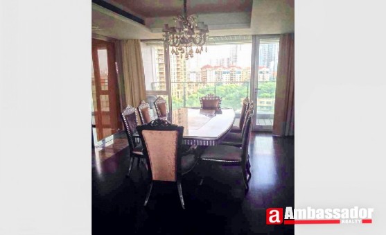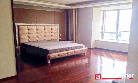 This fantastic 3 bedroomed apartment in shanghai features luxurious decoration and nice layouts. Rectangle table, chairs with long backrest and ironic ceiling lights emanate a classical braveness and magnificence. Spacious living room and dining room with large French windows each opening onto a huge balcony provide an extra place for resting or gathering on a lazy afternoon. Warmth pervades in the capacious space in illuminant lights. Four bedrooms have three en suite bathrooms. Fully furnished furniture and appliances can meet all your requirements of life.