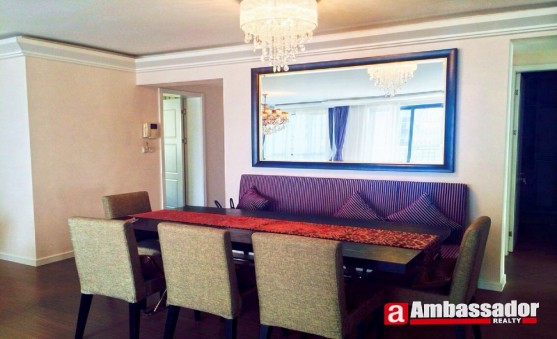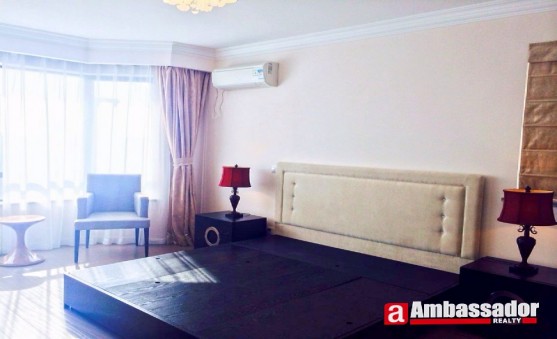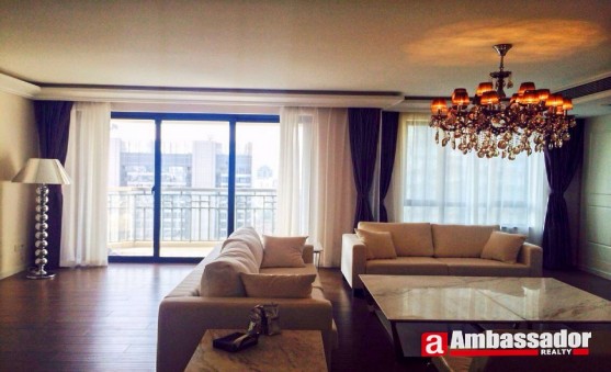This 4 bedroomed apartment in shanghai is presented in excellent condition benefiting from a spacious living room, a cute dining area, a well-fitted kitchen room, three bedrooms and a study room. The master bedroom with a desk and a chair offers you a peaceful environment for reading.Furniture and appliances are fully furnished to meet your requirements of life.