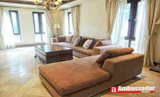 This 6 bedroomed villa is luxuriously decorated with Western style furniture of high quality. It is presented in excellent condition benefting from well-proportioned rooms including three spacious living rooms with large French windows, a dining area, a well-fitted kitchen room and six bedrooms with four en suite bathrooms. Furniture and appliances are fully furnished to meet your requirements of life.