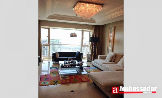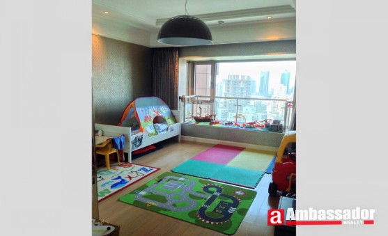 This 3 bedroomed apartment in shanghai offers bright and spacious accommodation benefiting from a large living room with large windows providing the abundant sunshine. The master bedroom with floor to ceiling windows offers a fantastic view. A cute bedroom with a bunk is especially suitable for the family with kids. The modern kitchen room is fitted with quality equipment. Bathroom with a large bathtub makes you enjoy taking a bath.