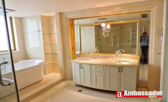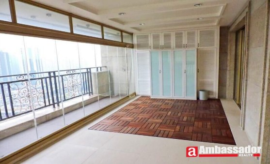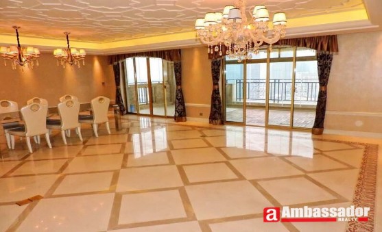 This stunning 4 bedroomed apartment features luxurious interior decoration and nice layouts. Spacious living room with classical sofa softly emits exquisite magnificence. Cool light marble floor and beautiful light system makes the living room more royal ambient. Spacious bedrooms enjoy sufficient sunshine with floor-to-ceiling windows and bring you high quality of enjoyment.