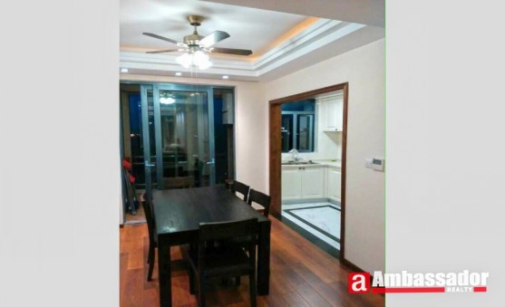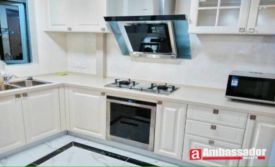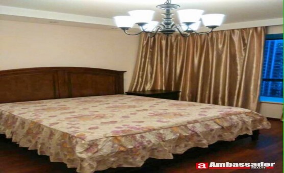 This well -furnished 3 bedroomed apartment in shanghai features spacious living room with floor to ceiling windows. A cute dining area faces to the bay windows on another side of the living room. Master bedroom with a king- size bed and study room offers a bookshelf can meet your different demand. Airy & modern kitchen room is well equipped with quality appliances.