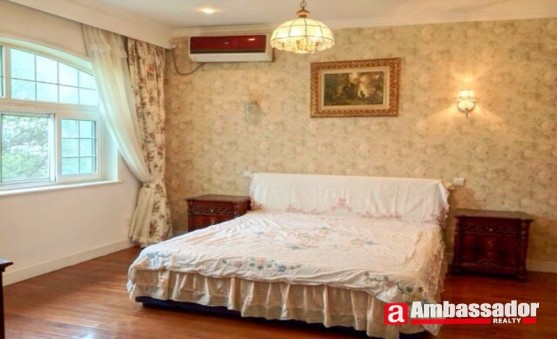 Very nice villa in this area, with elegant marble floor sread all over the 1st floor. Modern kitchen leading to a dining area with wooden table and chairs of high quality. Spacious living room enjoy sufficient sunshine with floor-to-ceiling windows leads to a large backyard full of greens . Cozy bedrooms with elegant wallpaper and king size beds bring you high quality of enjoyment.