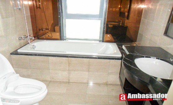 This 3 bedroomed apartment in shanghai offers bright and spacious accommodation benefiting from a large living room with large windows providing the abundant sunshine. Light color furniture and marble floors makes the room much brighter and larger in the space. The modern kitchen room with double glazing door is fitted with quality equipment. Bathroom with a large bathtub makes you enjoy taking a bath.