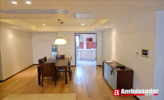 This superb apartment features nice layouts and super furniture. Airy living room leads to a spacious dinning area with floors to ceiling windows. With light wooden floors throughout and soft sofa set in the living room, you can enjoy the high quality of lifestyle. The modern kitchen room is fitted with quality equipment. Bathroom with a large bathtub makes you enjoy taking a bath.
