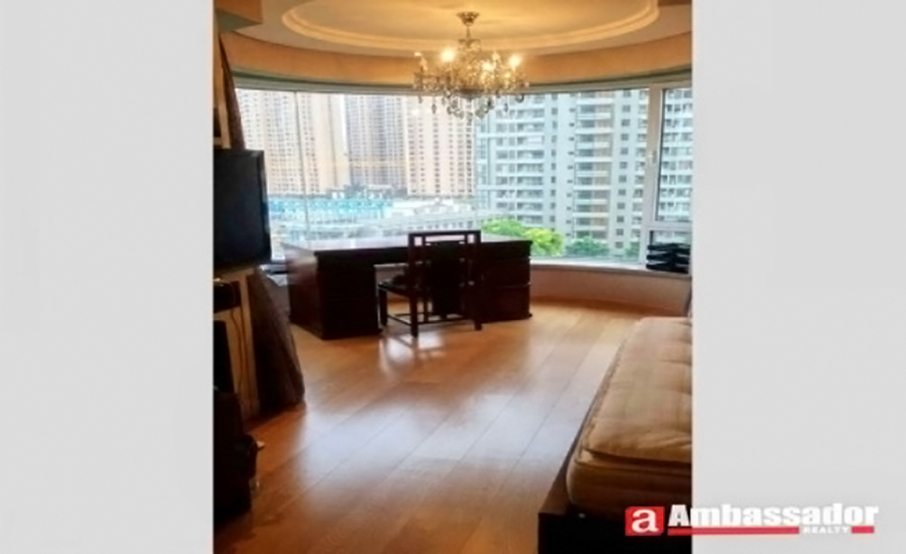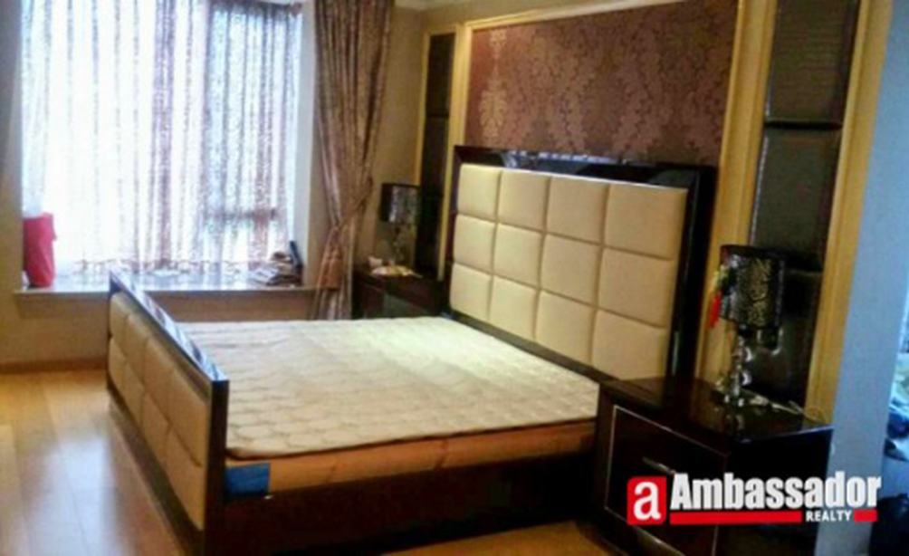 This beautiful 4 bedroomed apartment in shanghai features spacious living room with light marble floor, leather sofa set and droplight decorated makes more luxurious, brilliant study room are surrounded by bay windows offers the reading enjoyment. Western style kitchen room is well equipped with quality appliances. Offering a great location, close to the amenities.