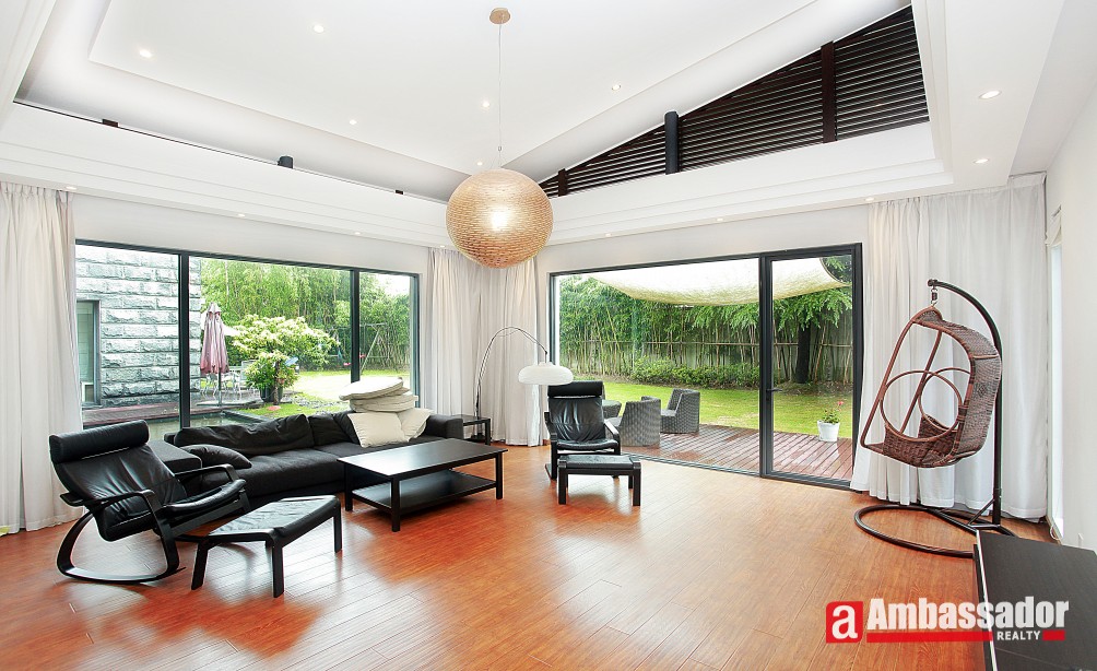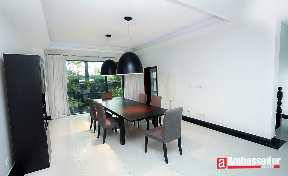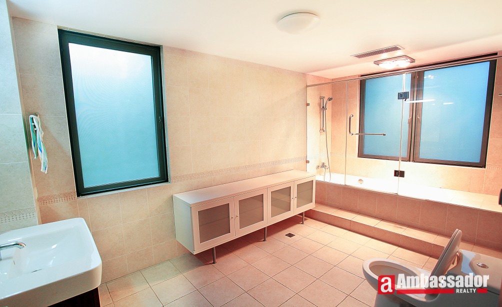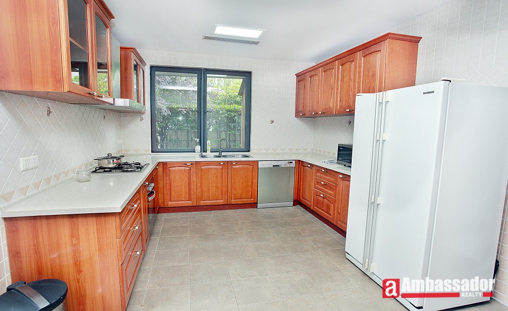 This elegant 5 bedroomed villa features huge terrace which provides you with a beautiful view of the garden. A spacious living room with leather sofa makes you feel comfortable after one day work. Floor to ceiling windows leads to a large backyard full of greens. Western style open kitchen leads to a huge dinning area , 5 bedrooms with four en suite bathrooms.
