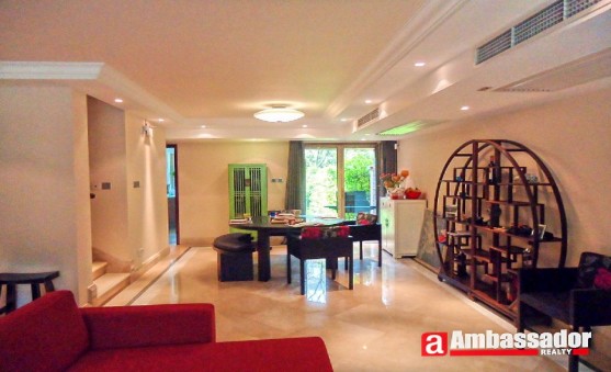 This 3 bedroomed villa is presented in excellent condition benefiting from a spacious living room with French windows leading to a large rear garden full of lush greens, with red sofa set and light marble floors,a large wooden showcase provides you with much space for putting your collections, three bedrooms with en suite bathrooms and a well-fitted kitchen room.