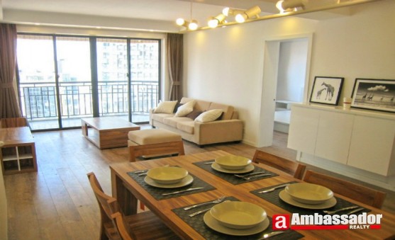 This wonderful 3 bedroomeded apartment in shanghai features spacious living room with floor to ceiling windows and wooden floor in warm color spread thoughout. Bedroom with bay windows for enjoying a fantastic downtown view. Airy kitchen room is well equipped with quality appliances. A large bathtub with massage function makes you enjoy taking a bath.