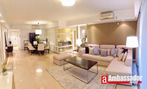 This fantastic 4 bedroomed apartment in shanghai features white furniture of high quality. It is excellent condition benefiting from well-proportioned rooms including a spacious living room, a large dining area with Western style dining table and desks, Four bedrooms with three suite bathrooms, a study room and a well-fitted kitchen room.