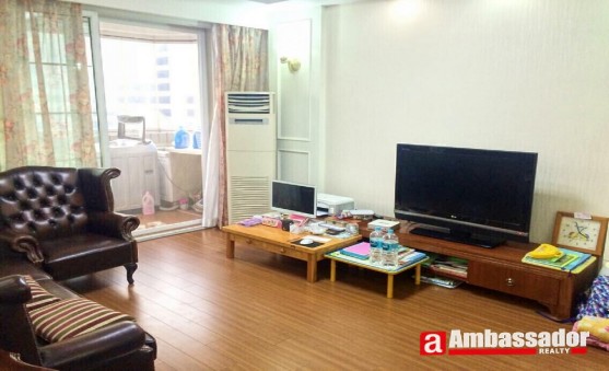 This 3 bedroomed apartment in shanghai offers bright and spacious accommodation benefiting from a large living room with large windows providing the abundant sunshine and leather sofa set makes you feel so comfortable . The master bedroom with floor to ceiling windows offers access to a huge balcony. A cute bedroom with a bunk is especially suitable for the family with kids. The modern kitchen room is fitted with quality equipment.