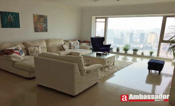 This superb 4 bedroomed apartment features Western style decoration and furniture of high quality. White color furniture and white wall makes the room much larger in the space. It is in excellent condition benefiting from well-proportioned rooms including a spacious living room with French windows to enjoy the great Huang Pu River sight, 4 bedrooms with three suite bathrooms, and a well-fitted kitchen room.