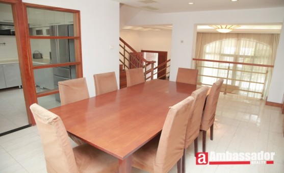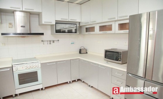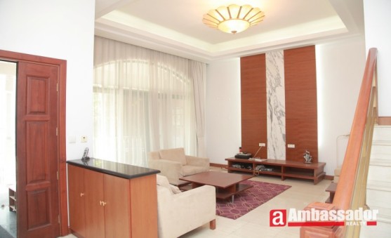 This amazing 4 bedroomed villa is fully furnished with simple style furniture and nice layout. Speical designed wooden furniture of high quality makes you feel comfortable. Airy and spacious living room with special designed stairsteps leading to the cozy bedrooms in the seconde floor. Really mordern style kitchen is fullly-fitted in silvery color leading to a spacious dinning area. You can have a really enjoyable life in this amazing home.