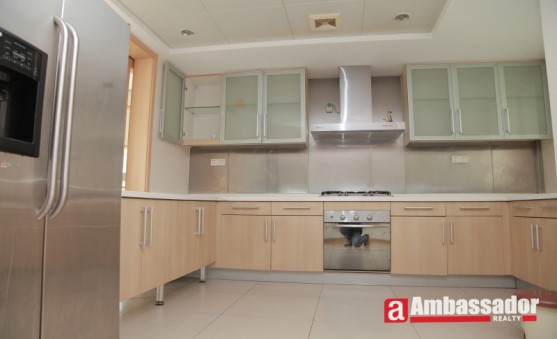 This 2 storeyed beautifully decorated villa is presented in excellent condition with well-proportioned rooms including a spacious living room with a dining area, a fitted kitchen room, bright bedrooms with stylish beds. What's more, foor heating and the central AC are all over the villa. Fully-fitted open kitchen is in special designed providing you a high quality of life.