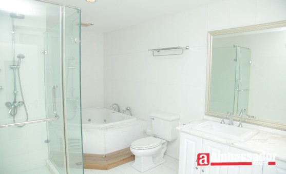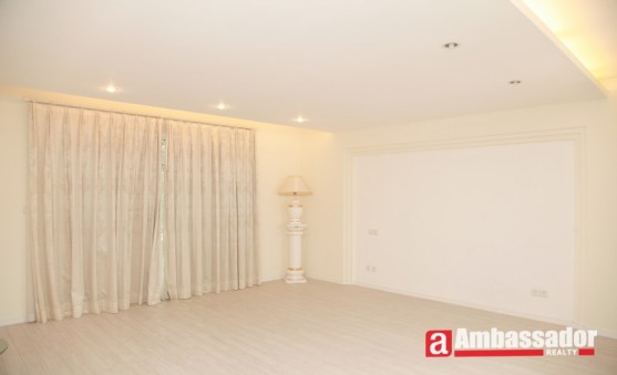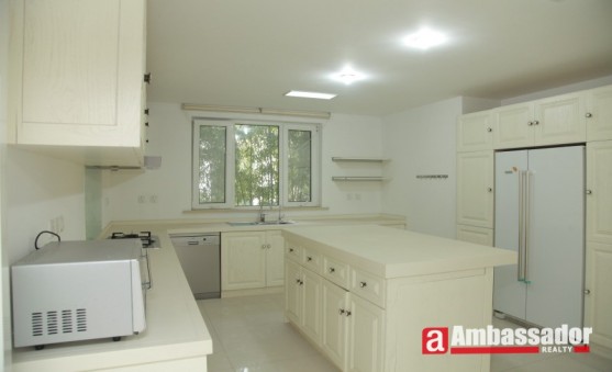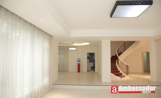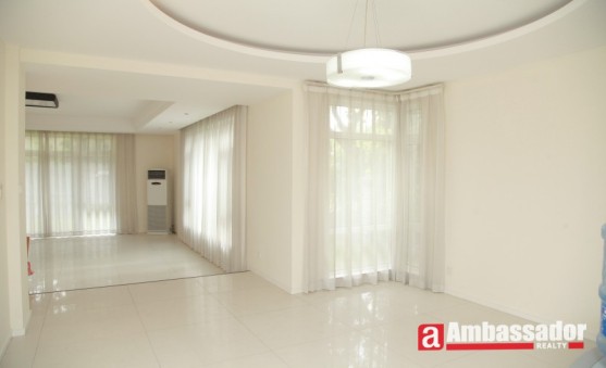 This amazing 5 bedroomed villa features western style decoration with wooden furniture of high quality. Each room with largh windows provides you with a beautiful view of garden. Simple white color forms a really cozy environment. Very unique styled staircases leading to a second floor provides you much privacy.