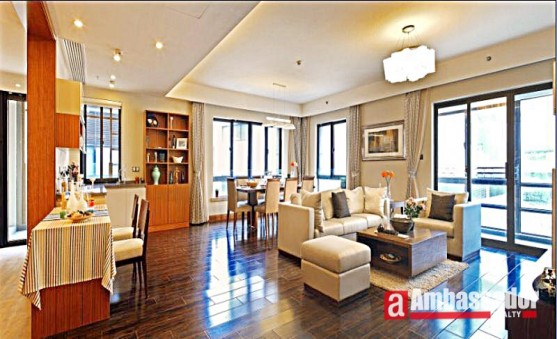 This rare three-bedroom apartment benefits from refreshing warm colour design with a well-proportioned living space in an up-and-coming expat apartment compound.