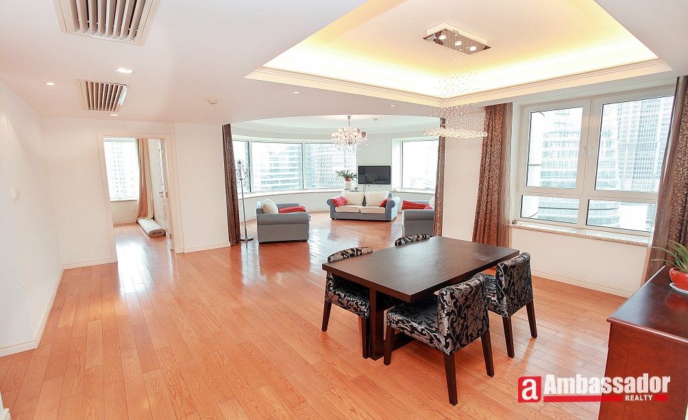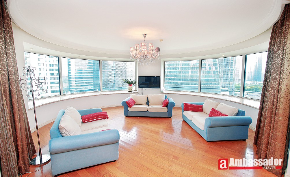This impressive three bedroom penthouse apartment offers outstanding living and entertaining space, a fantastic 180° view over Lujiazui skyline.