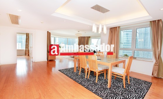 Set within a fantastic buliding in one of Shanghai's most desirable areas, this excellent three bedroom apartment is just moments from Jingmao Building and boasts striking classical interiors.